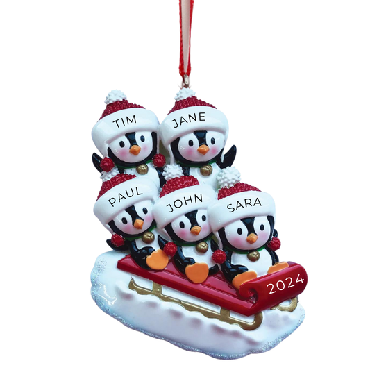 Christmas Sweater Penguin Family of 5 Ornament
