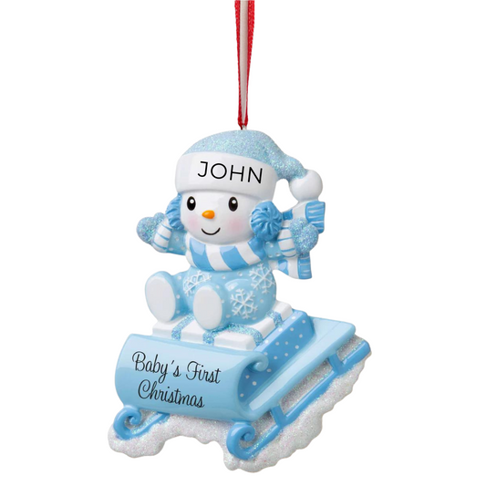 Sold outSnowbaby on Sled (Blue) Ornament