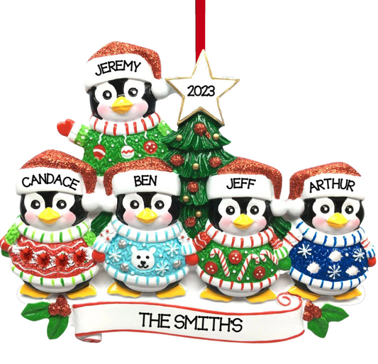 Christmas Sweater Penguin Family of 5 Ornament