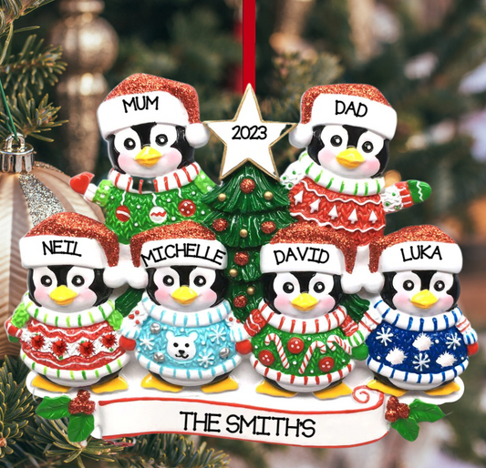 Christmas Sweater Penguin Family of 6 Ornament