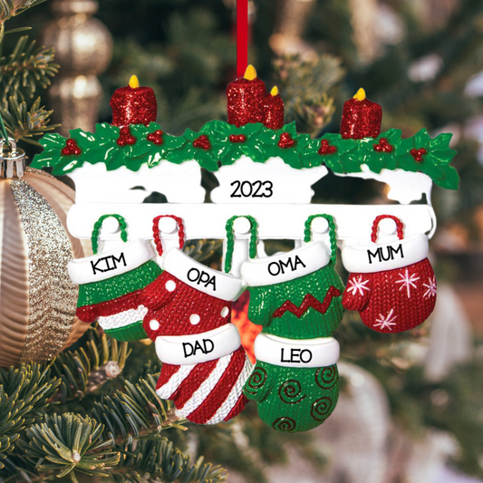 Sold outMantle Stocking Family of 6 Ornament