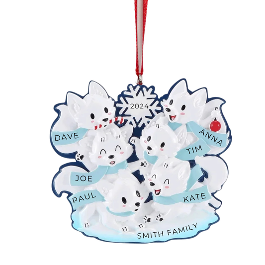 Arctic Fox Family of 6 Ornament