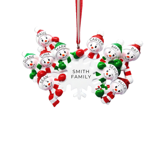 Snowman Snowflake Family of 10 Ornament