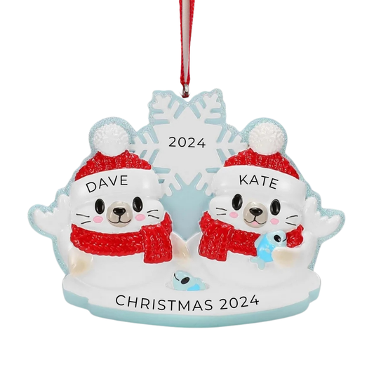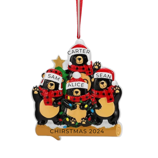 Bears with Scarf & Santa Hat Family of 4 Ornament