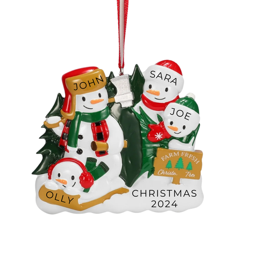 Christmas Tree Farm Snowman Family of 5 Ornament